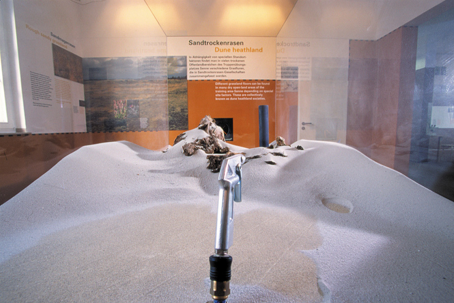 Insgesamt 240 m² Ausstellungsfläche, verteilt auf zwei Etagen, bietet den Rahmen für ein spannendes Thema: Naturschutz und Militär. Das Projekt veranschaulicht die ökologische Bedeutung des Truppenübungsplatzes als Beispiel für gelungenes, partnerschaftlich von Naturschutz und Militär durchgeführtes Umweltmanagement.
